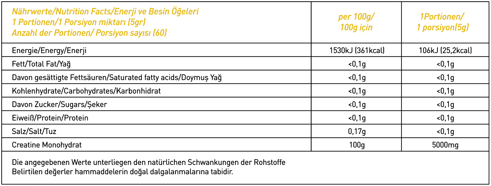 Thor Nutrition 300gr Creatine 60 servis Limon Aromalı